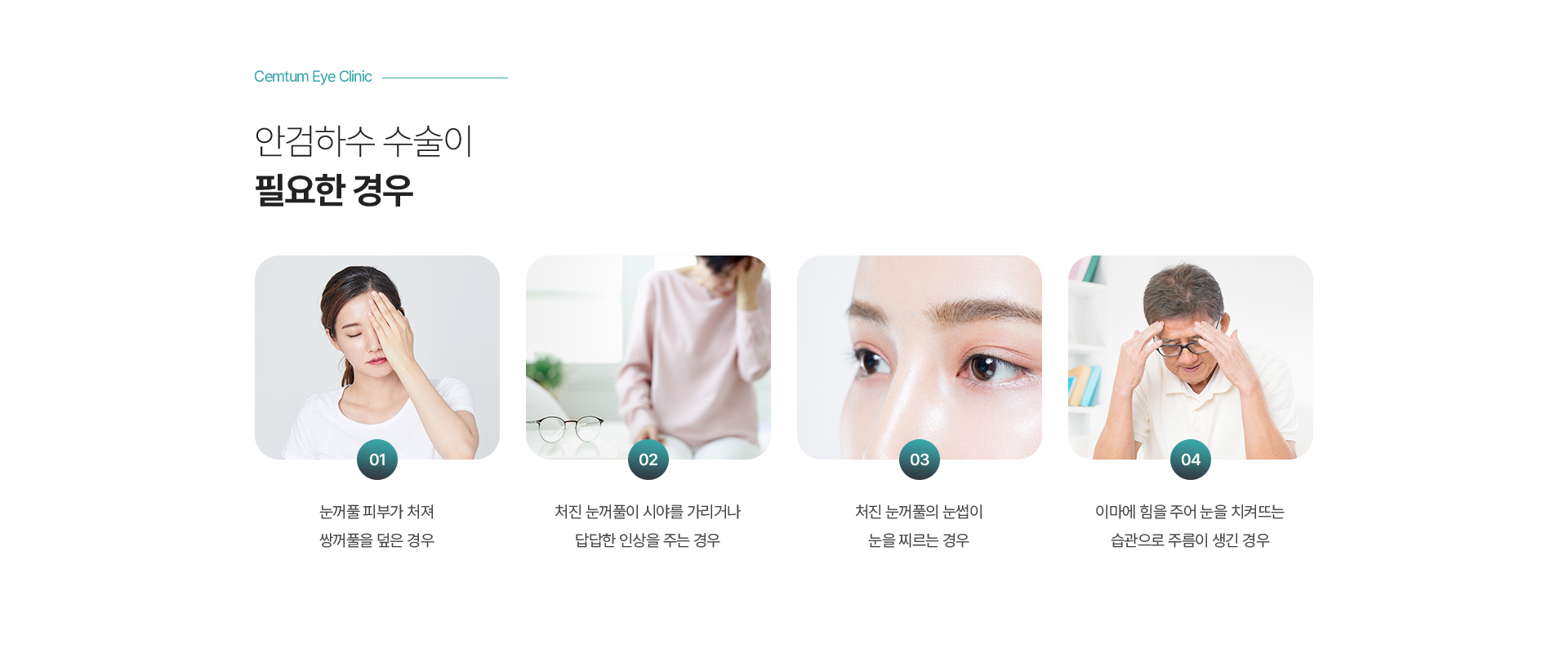 인상을 줄 수 있어 눈꺼풀을 올려 시야를 확보하는 수술이 필요합니다.